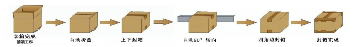 3、紙箱上下四個(gè)角邊同時(shí)自動(dòng)封口、撫平、快速、平穩(wěn)。