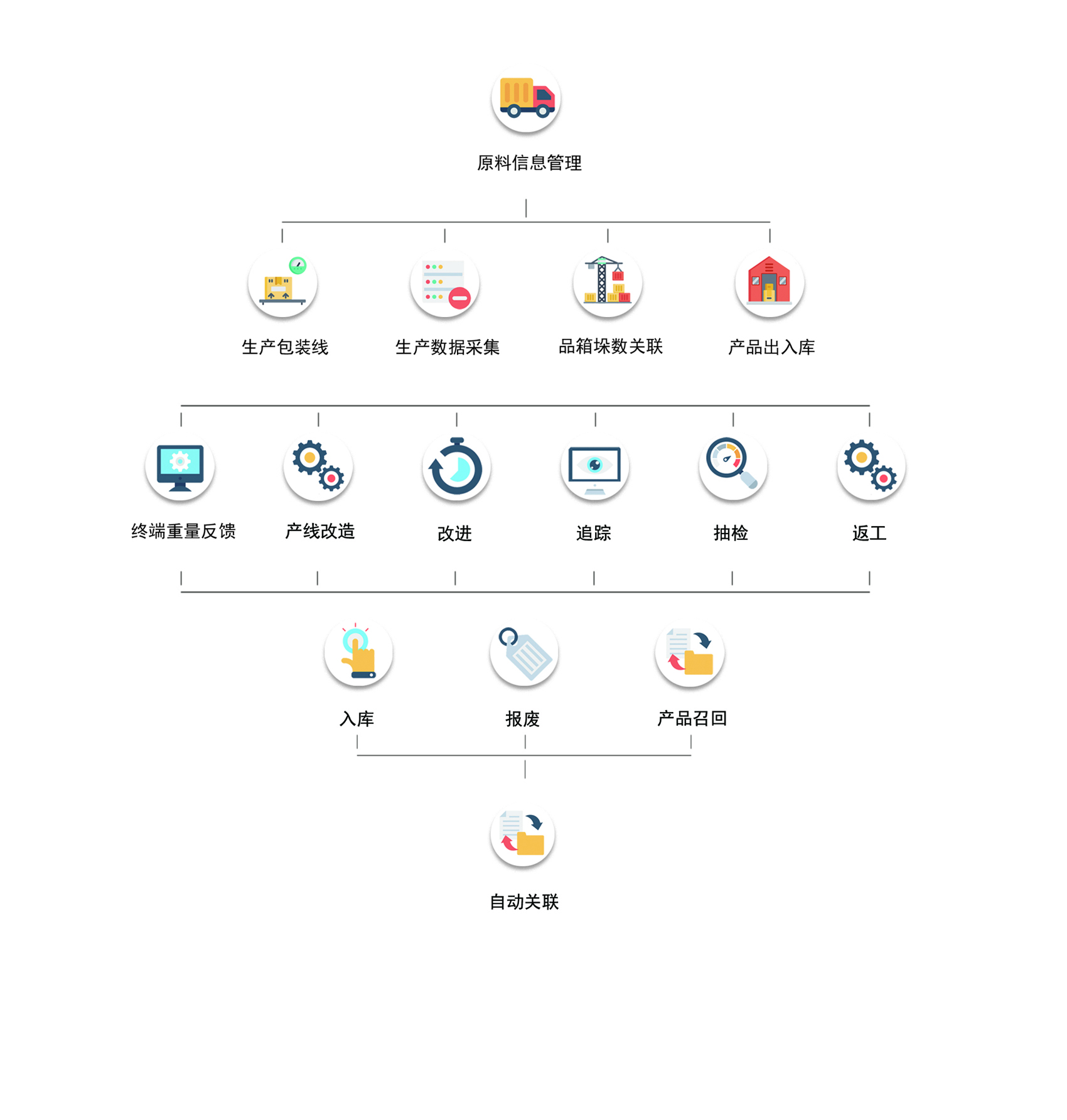 為每個產(chǎn)品建立唯一標(biāo)記,支持抽檢和全檢,支持每道工序和產(chǎn)品質(zhì)檢,嚴(yán)控產(chǎn)品質(zhì)量,減少退貨、索賠風(fēng)險,幫你追蹤產(chǎn)品問題根源,及時改進(jìn)。